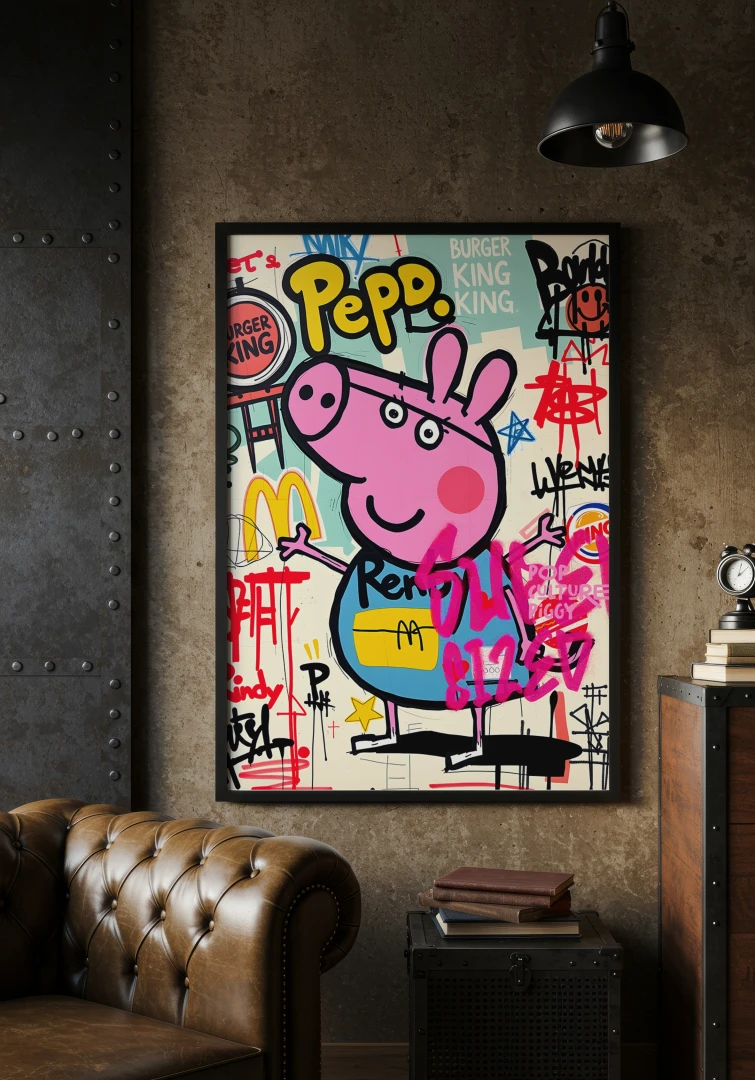 Pop Art „Różowa Świnka Street Art” – Nowoczesna Grafika Urban
