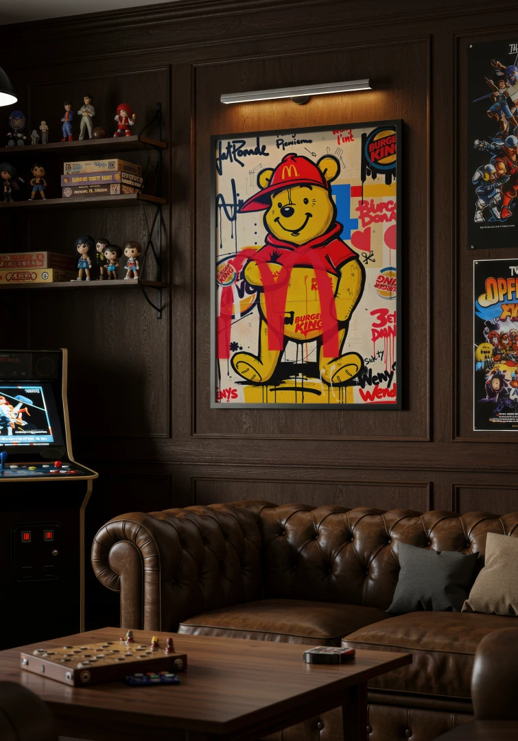 To propozycja dla osób, które cenią odważny design, sztukę współczesną i motywy inspirowane popkulturą. Plakat z misiem w stylu street art łączy w sobie humor, nostalgię i nowoczesną estetykę, tworząc dekorację ścienną o silnym, rozpoznawalnym charakterze.