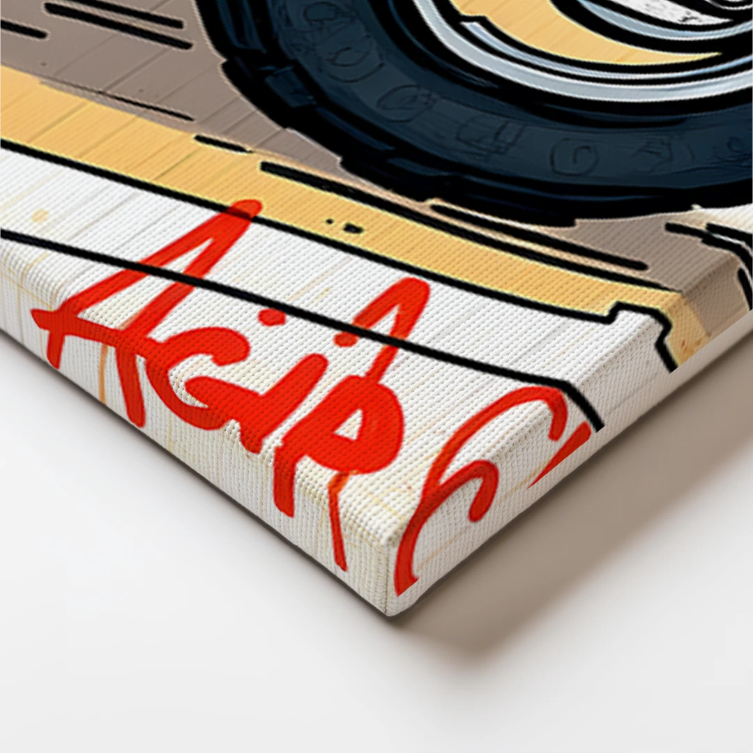 Kompozycja łączy humorystyczną formę z energią drogi i wolności. To wyrazisty akcent dekoracyjny dla osób, które cenią motoryzację, styl retro oraz nowoczesną estetykę street art.